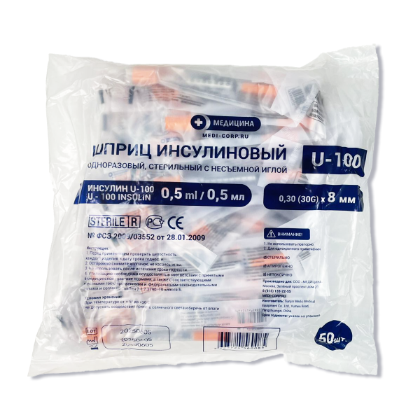 U-100 0,5ml; 0,30 (30G) x 8мм